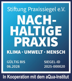 Da wir uns schon seit mehreren Jahren mit dem Thema Nachhaltigkeit und den Einflüssen des Klimawandels auf Gesundheitsthemen beschäftigen, haben wir uns im Juni zur Nachhaltigen Praxis zertifiziert.